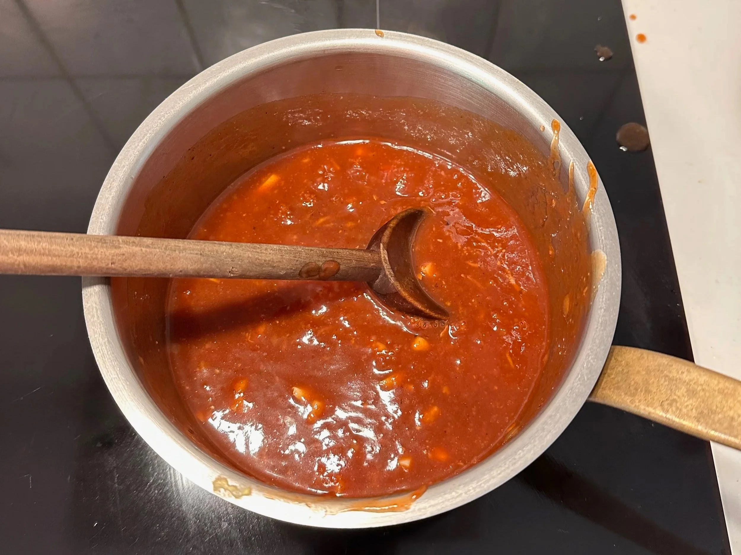 Når det koger, så skru ned for bluset og lad det simre i 15-20 minutter, mens du rører i gryden af og til.