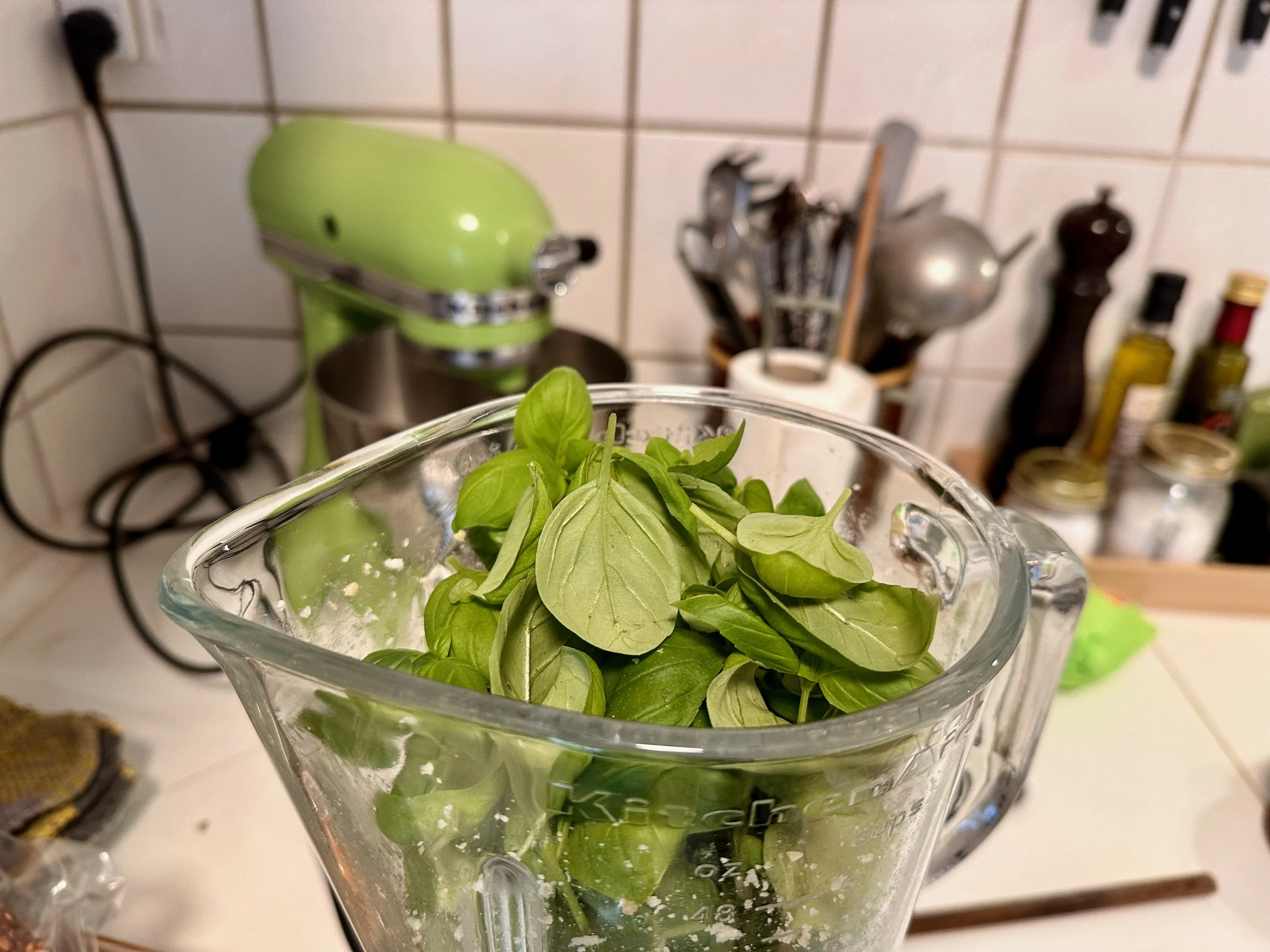 Her i weekenden var jeg igen løbet tør for det grønne guld; Pesto Genovese. Så det var tid til flå en basilikum-potte og bruge det sidste af konge-osten; Parmigiano Reggioano.